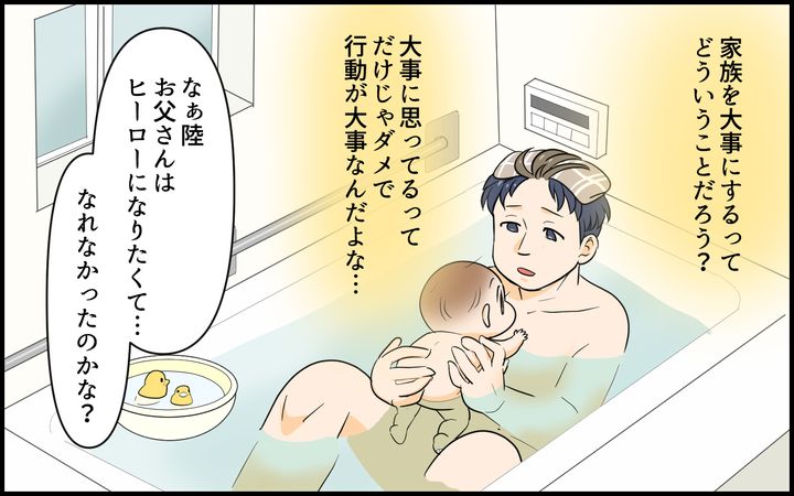 「まずは家族のヒーローに」本当の意味で家族を大事にしていくには<ヒーローになりたい夫 10話>【うちのダメ夫 まんが】