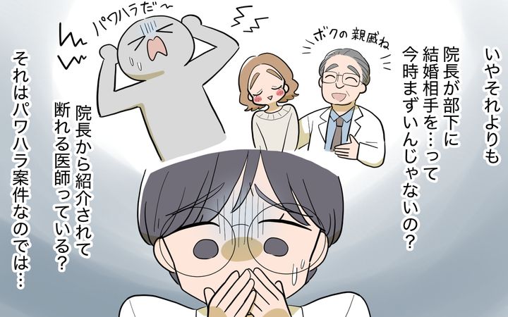 それでも父もこんな無茶なことを言ってくる親戚はすぐに断るだろうと思っていたのですが、まさか独身の先生を紹介すると言い始めて…。院長から声をかけられたら、部下の先生たちは断れないと驚いた矢先、父が名前をあげたのは、ある先生で…!