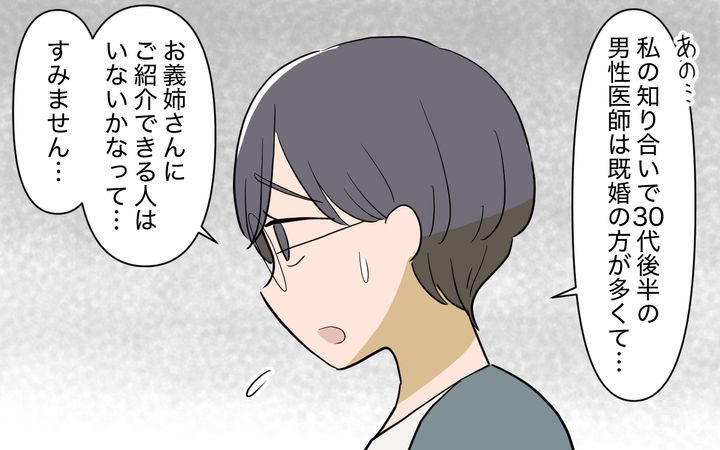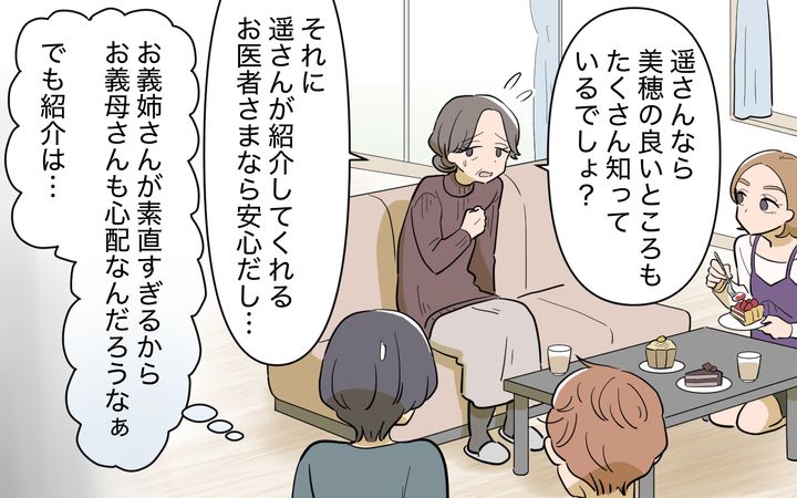 「重大な話がある」と休日に義母から呼び出された遥と夫・蒼太。義実家には義姉・美穂もいて、義姉の婚活をサポートするようにという話だった。遙は父の病院で医者として働いており、その同僚を紹介して欲しいというのだ。