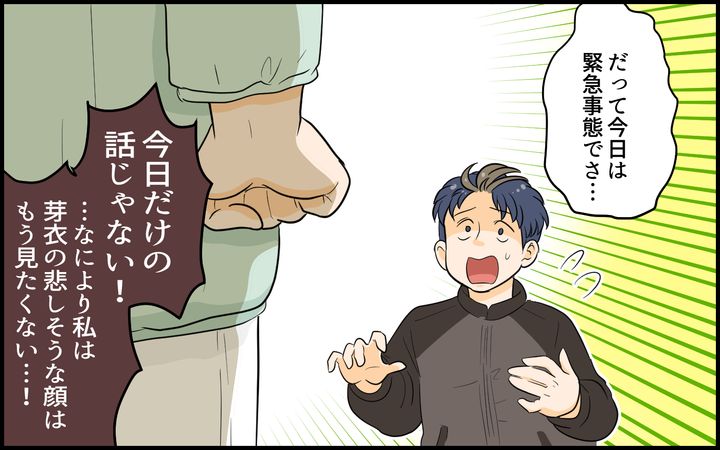 そんななか、慎司の幼馴染の美里がシンママになって近所に住むことになり、友だち思いの夫は何かと世話を焼くようになる。娘が楽しみにしていた水族館へ行く日も、美里の子どもがケガをしたと聞いて家族を放り出して出かけてしまう。これにはさすがに真衣の堪忍袋の緒が切れた。