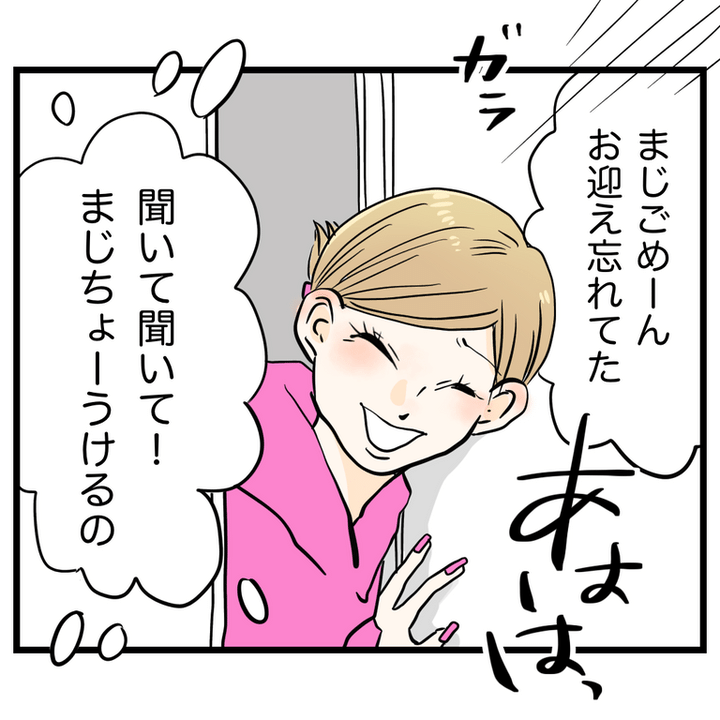 やっとお迎えにきたみかちゃんママ。みかちゃんはあんなに泣いてたのに、上機嫌で笑いながら登場しました。しかも、もしかしてちょっと酔ってる…?