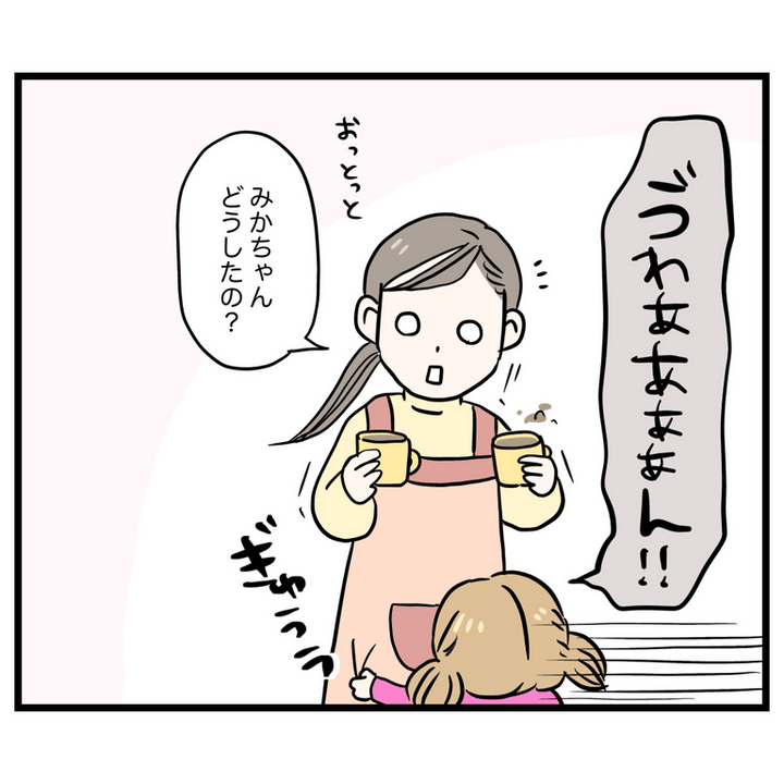 最後の1人になるのが寂しいのかな…でも、わりといつも気の強いみかちゃんがこんな風に泣くのは意外で驚きました。ママのお迎えが遅いことと言い、何かあったのでしょうか。