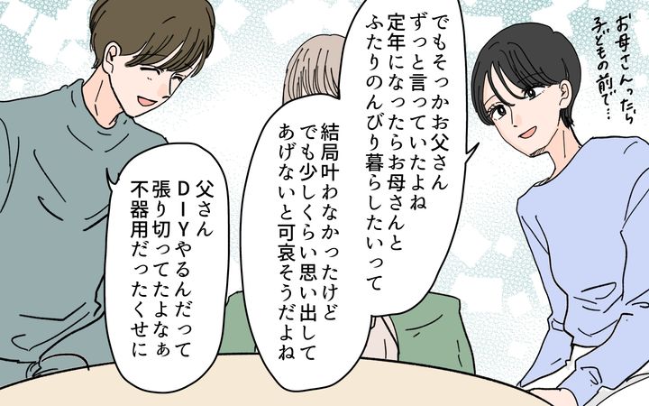 美恵子の息子である良平が配置転換によって給料が削減。その補填のためにお金目当てで食事を持ってきていたのだ。さらには菜帆は、姑に尽くしたことにより同居を持ち掛けてもらうことを狙っていたという。その計画を知った美恵子は、息子夫婦との付き合い方を改めて考えることに…。