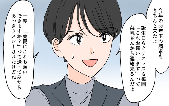 まさか美夏ちゃんが欲しがっていないお菓子をあげることで、その分の見返りとして贈り物をおねだりしていたなんて…。これまで関係に亀裂が入らないようにできるだけ円満に解決できればと思ってきましたが、その考えでは通用しないことがわかったのです。