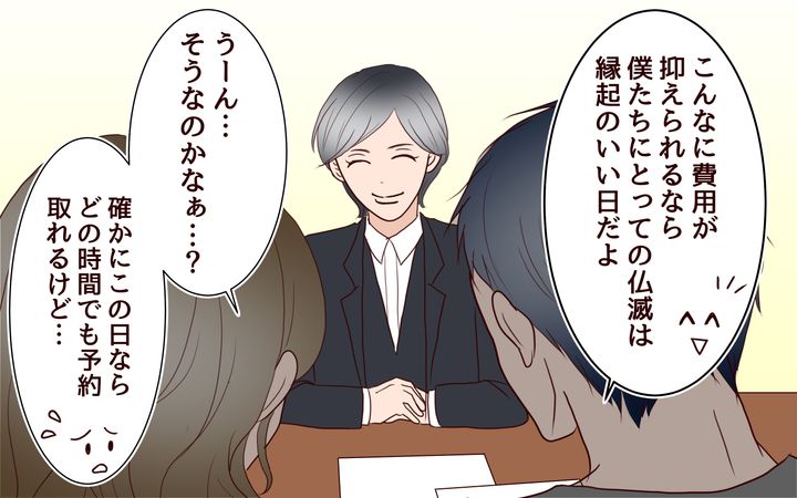 ふたりは先輩の紹介で結婚。結婚当初、有希はしっかり者の俊一といる安心感に惹かれて結婚した。ふたりで婚約指輪はいらないと決めたのだが、俊一は結婚式を挙げることも渋った。さらに式場では仏滅に式を挙げるプランの金額を聞くなど、いかんなくケチぶりを発揮するのだった。