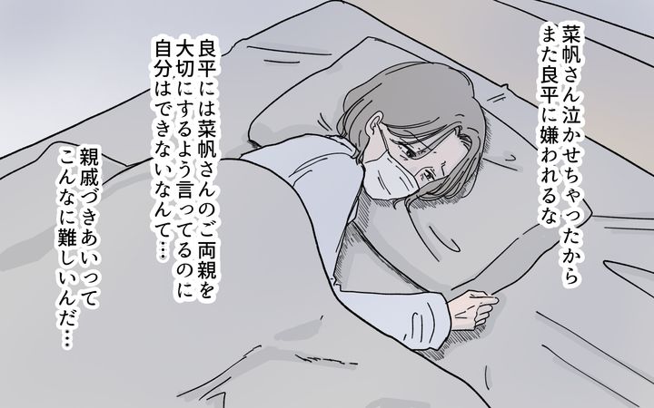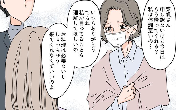 この年になるまで親戚づきあいで苦労したことがなく、また職場で苦労した経験はお嫁さんには活かすことができず…。あまりに自分が歯がゆくて仕方ありませんでした。そうして寝込んでいると、なぜか息子まで家に来て…。何やら菜帆さんについてわかったことがあったようでした。