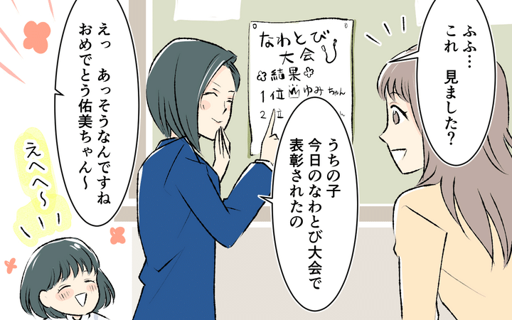 なわとび大会での佑美ちゃんの成績を自慢されました。奈々はあんまり飛べなかったけど、頑張ったそうです。その頑張りを「言い訳」だと切り捨て、シングルであることまで小馬鹿にするなんて…!