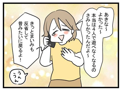 4人で集まるのが人生の楽しみだったみきも、あきなの思いを聞いてホッとしたようです。