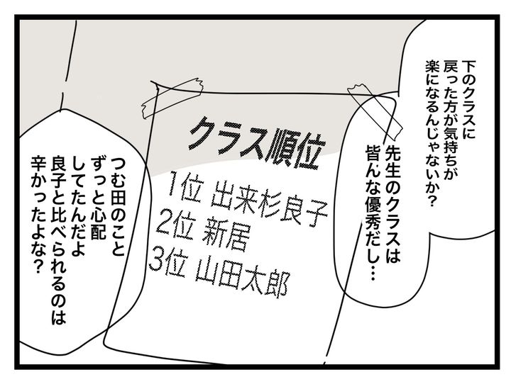 小6のツム子は中学受験専門の塾へ通っていて、最近下のクラスから成績のよい上のクラスに上がったばかりだ。しかし、同じクラスでいつも1位の成績をおさめている良子が、誰かにいじめを受けたことがわかり、先生はツム子がその加害者であると確信。別室にツム子を呼び、良子の机に入っていた悪意のある手紙が、ツム子の持っていたメモ帳と同じ紙で書かれていたのが証拠だと言う。何度「やっていない」と言ってもまったく信じてもらえず、「いい加減に認めなさい!」とまで言って詰め寄ってくる先生に恐怖を覚えるツム子。着地点が見えないまま、どうしてもツム子に罪を認めさせたい先生は「今認めたら、お母さんに黙っておくから正直に言いなさい」と交換条件を出してくるが…。