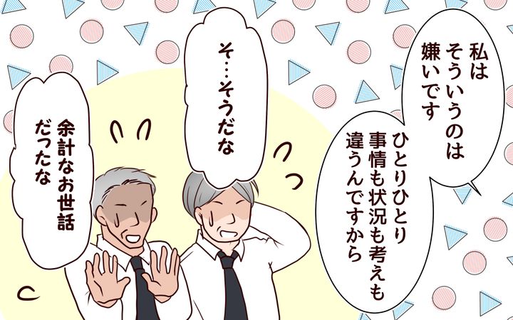 でも、さくらちゃんはそんなレッテルをあっさりと剥がして、私と嫌味なおじさんたちの間に割って入ってくれました。「ひとりひとり事情がある」と、独身の私の味方をしてくれて…うれしかったです。