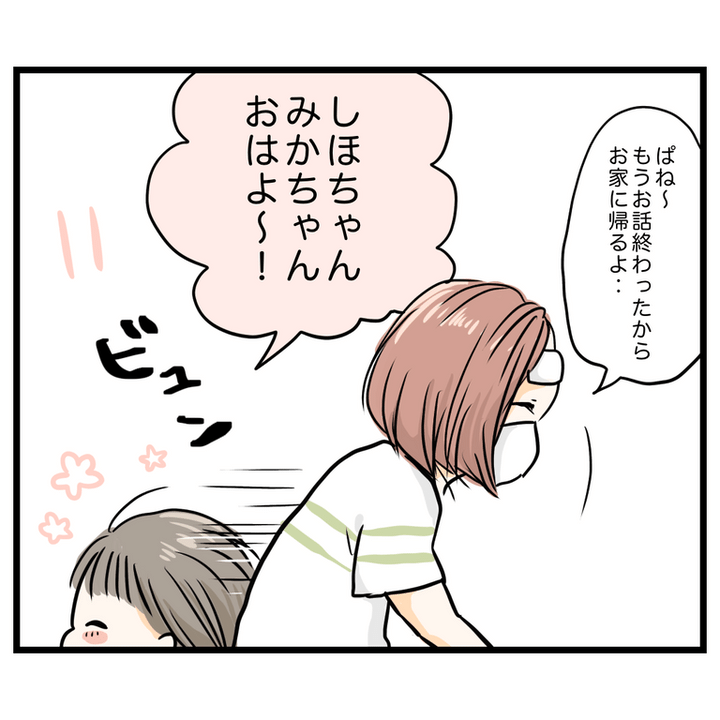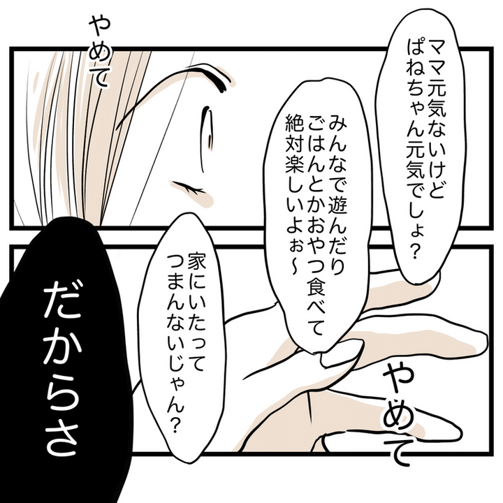 同じ保育園のみかちゃんママから「過保護」と言われている主人公。風邪で懇親会を欠席することを伝えると、みかちゃんママに娘の成長の機会を奪っていると責められました。みかちゃんママは代わりに娘を懇親会に連れていくと言って聞かず、当日の朝車で家の前まで来たのでした。酔っぱらってイライラしているらしいみかちゃんママは、断る主人公にゴミを投げつけ「いい加減にしときなさい」と攻撃的になるのでした。