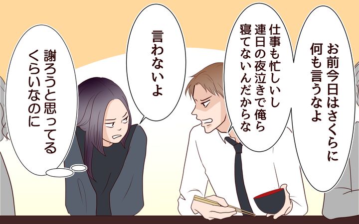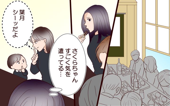 傲慢だと思っていた子持ち様ですが、さくらちゃんは常に周囲に気を遣っていて…。私は今まで、さくらちゃんにただストレスをぶつけていただけでした。自分勝手だった振る舞いを反省し、さくらちゃんに謝るタイミングを見計らっていると、酔った親戚のおじさんたちから「結婚しないのか」「子どもはどうする」と絡まれました。
