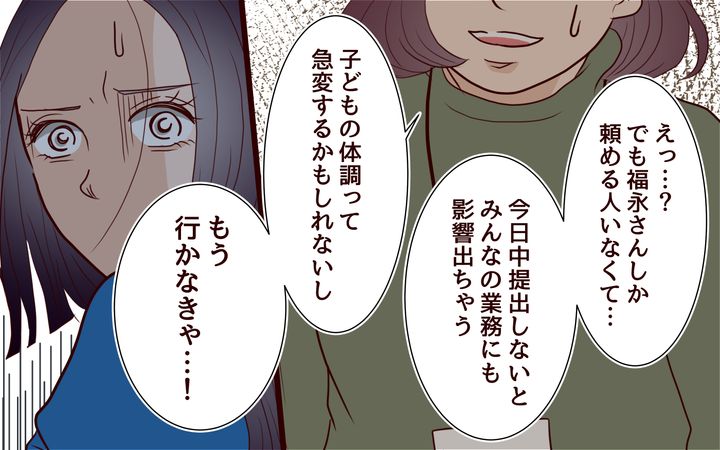 あるとき、さくらは酔った恵梨香からママ社員は同僚に「ふざけるな」と思われていると言われる。その言葉が気になって無理を重ねていたが、さくらの職場では「人員の体制が整っているから」と後輩たちはママ社員に協力的だった。