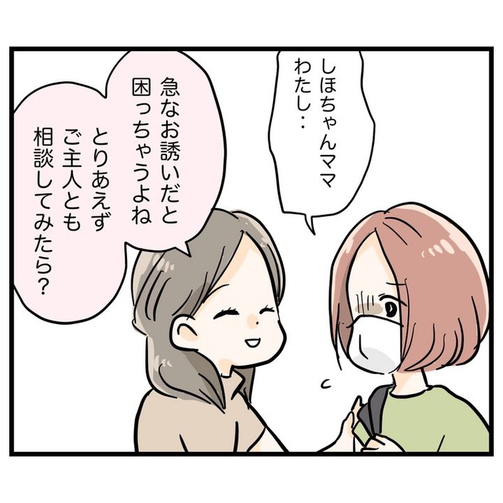苦手意識があるみかちゃんママと懇親会のバーベキューで仲良くなろうと思っていた主人公。しかし前日に風邪をひいてしまいます。幹事のみかちゃんママにそのことを伝えると、代わりに娘を連れて行ってくれると言うのですが、断ることに。するとみかちゃんママは主人公を「過保護」だと責めるのでした。確かに娘を可愛がっているし手も貸しているけれど…自分が娘を甘やかしすぎなのかわからなくなってしまい、主人公は悩みます。