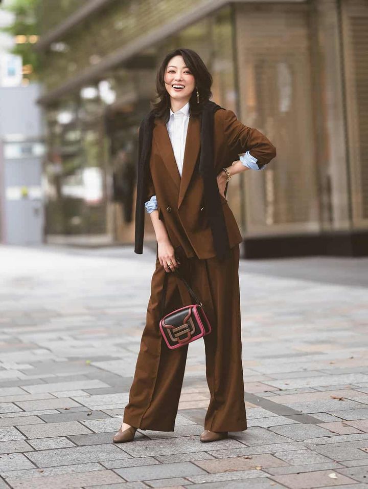 『ブラウンセットアップ』でオフィスコーデに季節の香りを