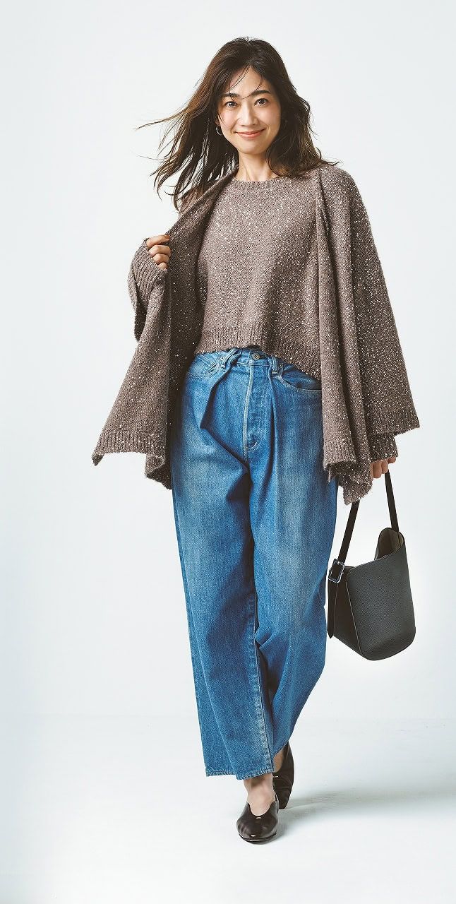 『ラメニット×デニム』で抜け感とリッチを両得