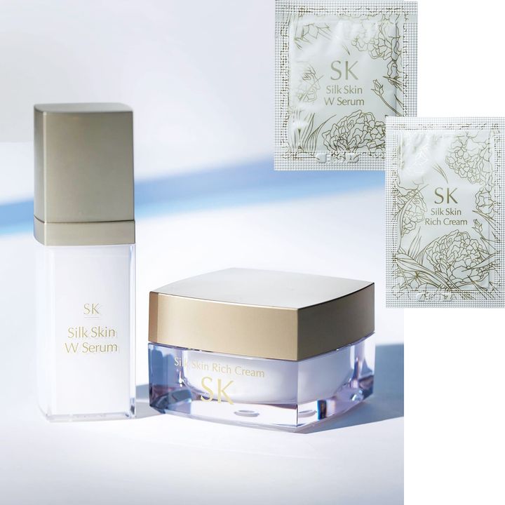 紫外線だけでなくブルーライトもカット。SKシルクスキンセラム 0.8ml、SKシルクスキンリッチクリーム 1.2g 各パウチ1包<医薬部外品>