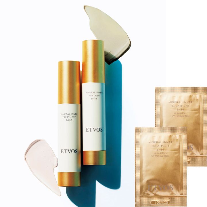 スキンケア級美容液下地で 潤いあふれるツヤ肌へ。ミネラルインナートリートメントベース ラベンダーベージュ 1ml、ミネラルインナートリートメントベース ポーセリンベージュ 1ml パウチ各1包