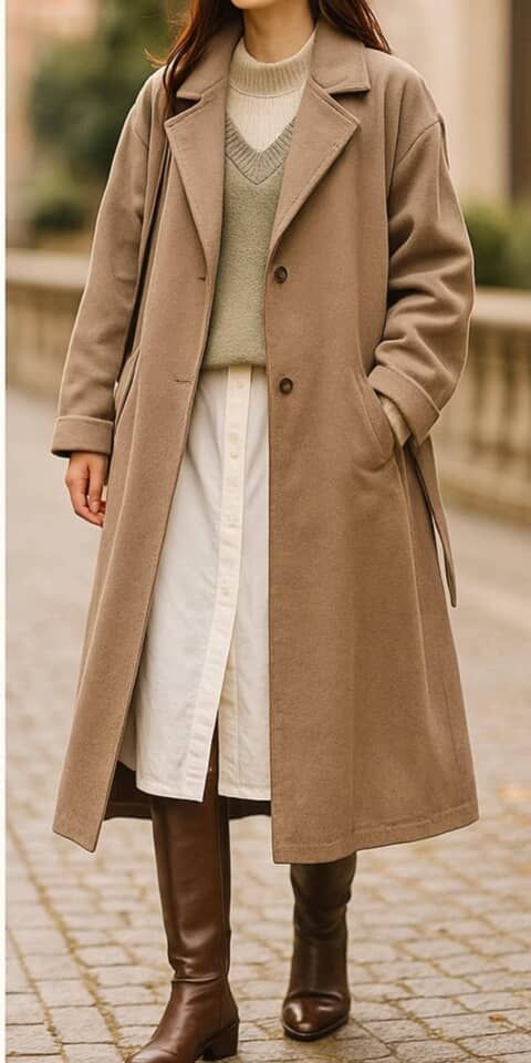 そこにオーバーサイズのトレンチコートやざっくりニットコートを羽織れば、“ゆるさ”と“きちんと感”が両立した今っぽい若見えスタイルが完成します。