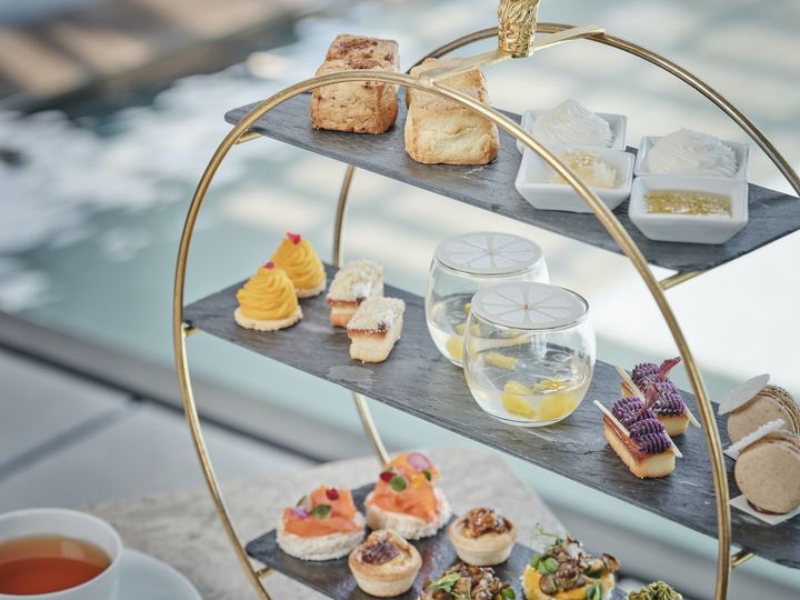 セイボリーとスイーツのバランスが絶妙で、甘いものが得意でない人でも楽しめる構成。「ホワイトカカオ、シークヮーサーゼリー」「焦がしバターのフィナンシェサンドウィッチ」「さんぴん茶のマカロン」「ローストビーフとイチジクジャムのミニブリオッシュバーガー ルッコラ添え」など、一口ごとに、沖縄の風や香りを感じるような繊細な味わいが広がります。