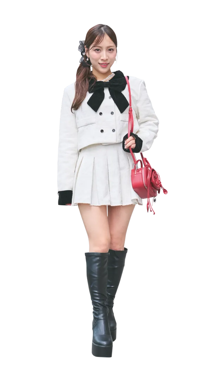 「Kerryのセットアップは、約8,600円。ブーツはGRLで約3,000円。バッグは韓国ブランドのStand Oilで約10,000円。