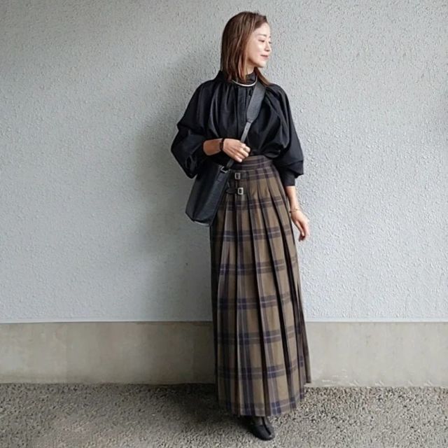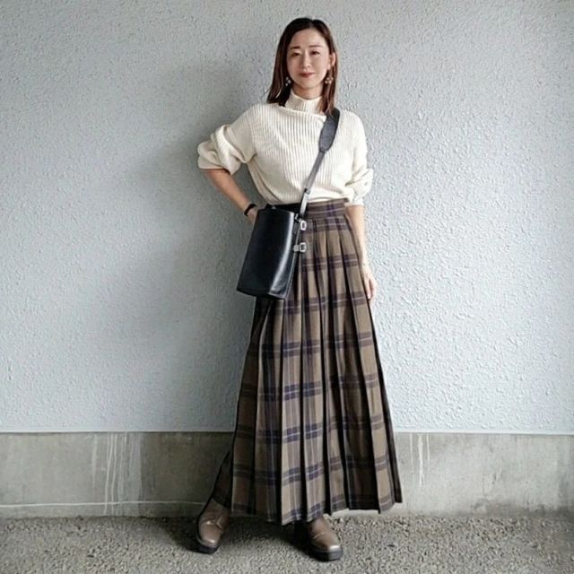 プレッピーファッションが2025秋のトレンドに登壇。その影響から注目を集めているのが「チェック柄のプリーツスカート」です。ロング丈のアイテムは真面目になりすぎず40代50代のコーデにぴったりマッチ。季節感を漂わせながら上品に決まりますよ。