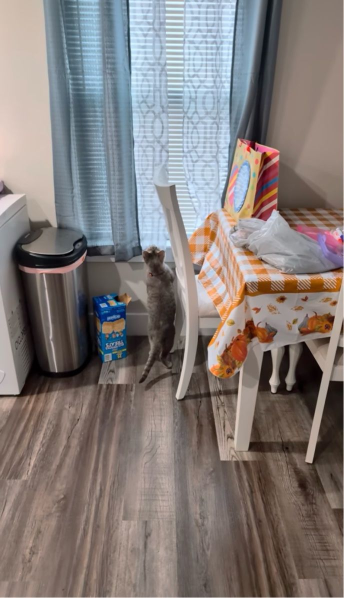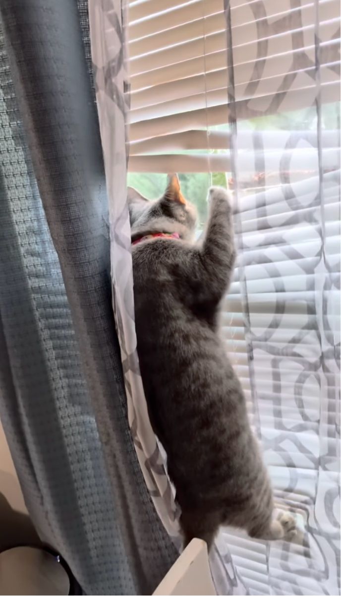 3. ネコは窓の外が気になる!背伸びしても見えないので・・ブラインドに飛びついた!【アメリカ・動画】