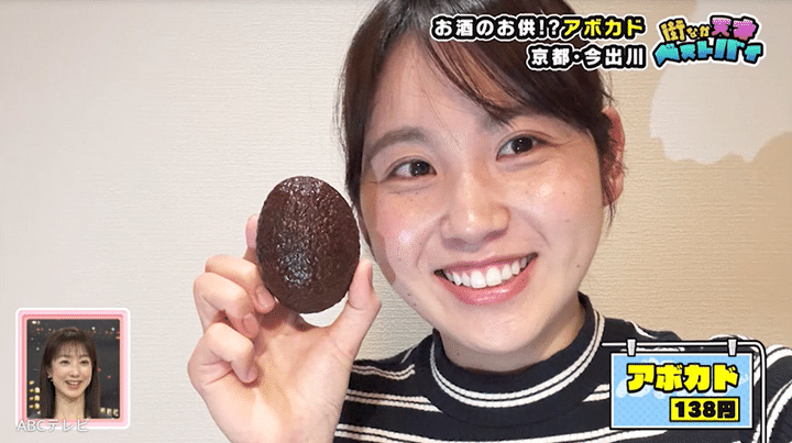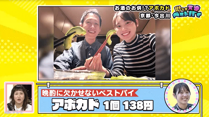 そんなお姉さんが、普段よく買っていて今もカバンの中に入っている1個138円のアボカドがベストバイ。実はもともと、味、食感、すべてにおいてアボカドが「めっちゃ嫌いやった」そうですが、「お酒と一緒に食べるようになってから好きになった」のだとか。今やアボカドは、夫婦の晩酌に欠かせない食材で、シンプルに醤油をつけて食べるとのこと!