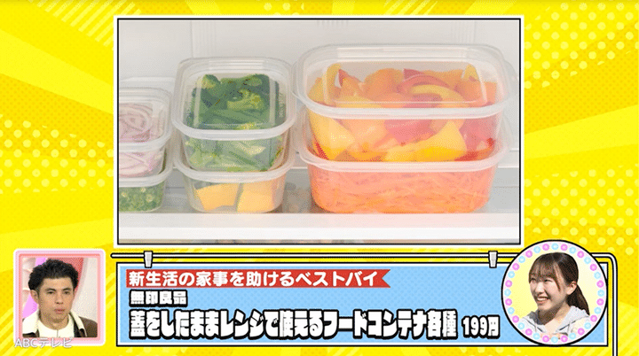 人気ベーカリーの「パンドブルー」で声をかけた買い物中の女性は、最近一人暮らしを始めたのだそう。「チャーハンとかを作り置きしている」という彼女のベストバイは、自炊で重宝している無印良品の保存容器。冷凍保存でき、蓋をしたままレンジで使えて、冷蔵庫の中に重ねて置いても安定するスグレモノです。