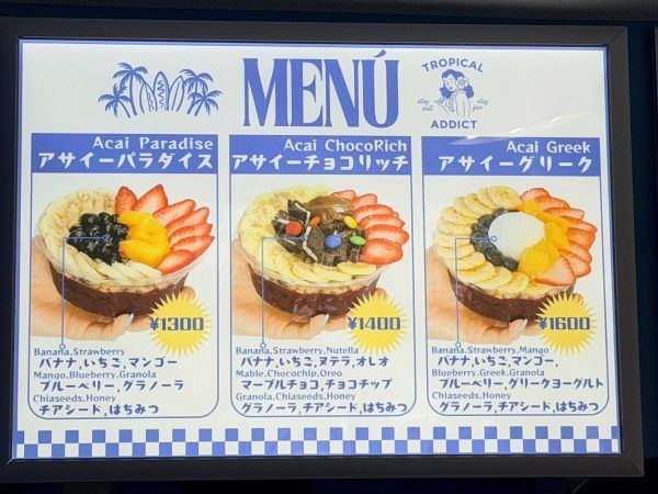 営業時間はなんと朝10時から深夜1時まで。「夜カフェ感覚でアサイーを楽しめる」って、ちょっと新しいスタイルかも