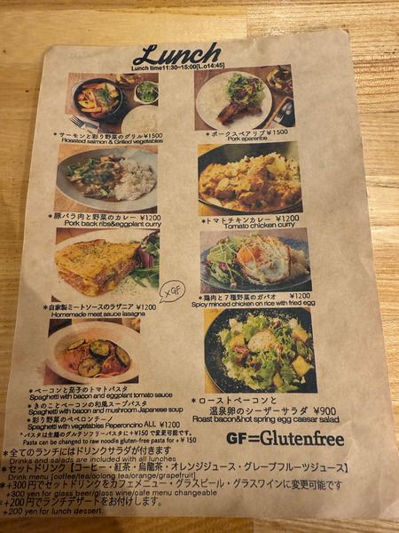ランチのメニューはこちら。Ωカフェ(オーカフェ)さんは、グルテンフリー料理を提供するダイニングカフェ。