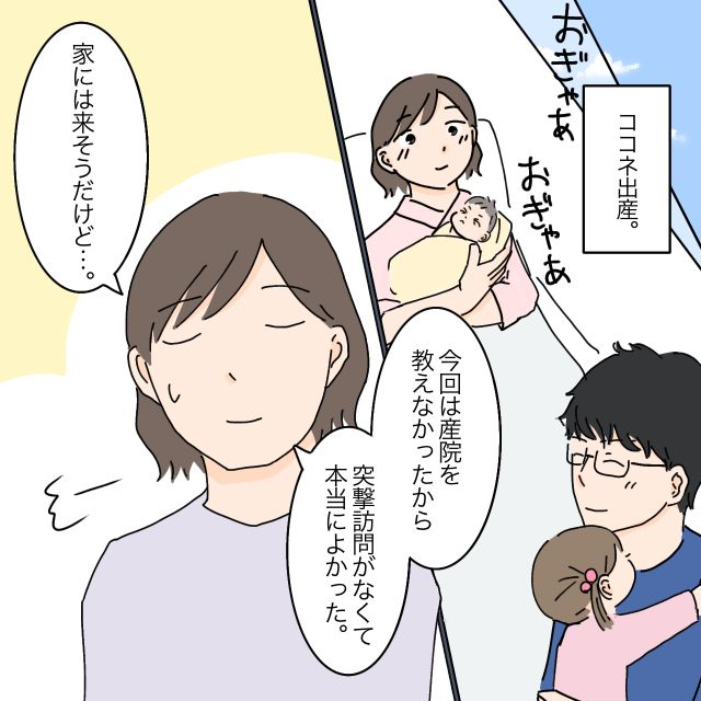 それから時が経ち、私は次女ココネを出産。前回の反省を活かし、今回は義母に産院を教えなかったから、急な訪問はありませんでした。退院した後が怖いな・・・と思いながらも、家族水入らずで穏やかな入院生活を過ごしました。