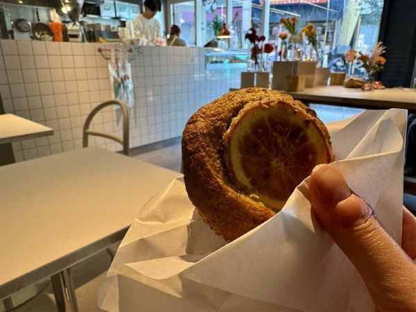 大人も子どもも大好きなもちもち食感で、まさに“生マフィン”の表現がぴったり!甘さ強めのずっしり重量タイプのマフィンではなく、ふんわりした軽さとほどよい甘さタイプのため、飽きがこずに何個でも食べられます。バーガー袋に入れてほおばって食べるスタイルも新鮮でした!