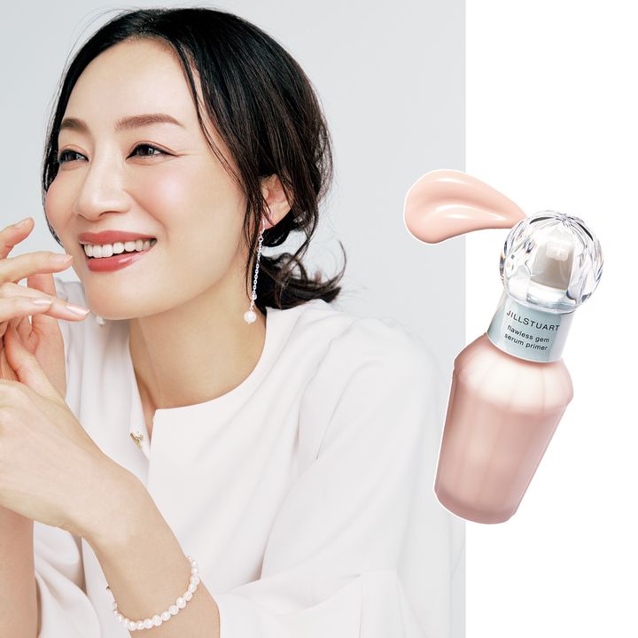 【明るめベージュの下地で血色感あげ】光を味方にツヤ感をプラス。ジルスチュアート フローレスジェム セラムプライマー SPF20・PA++ 30ml ¥3,850(ジルスチュアート ビューティ)