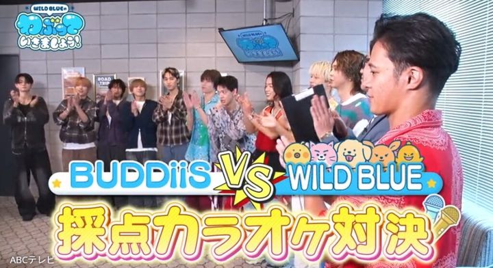 後半に行われたのは、BUDDiiSとWILD BLUEによるカラオケ対決。オリジナル曲とカバー曲、計2曲の合計得点で勝敗を決するルールだ。先輩の意地を見せたいBUDDiiSと、勢いに乗るWILD BLUE。両者のプライドがぶつかり合う、白熱した戦いが繰り広げられた。
