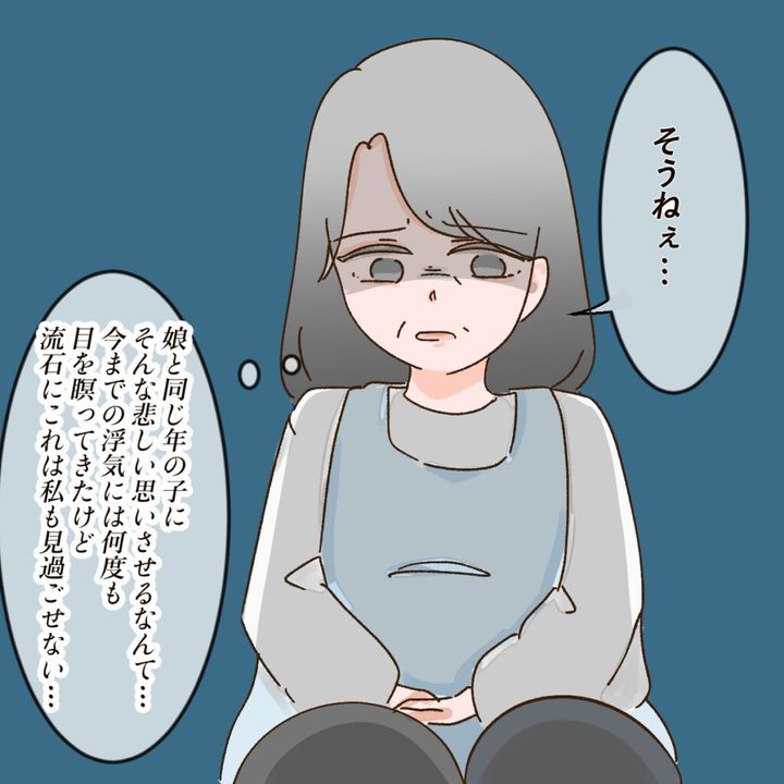 娘と同じ年の子にそんな悲しい思いをさせるなんて・・。いままでの浮気には何度も目を瞑ってきたけど、流石にこれは私も見過ごせない・・と考えていました。