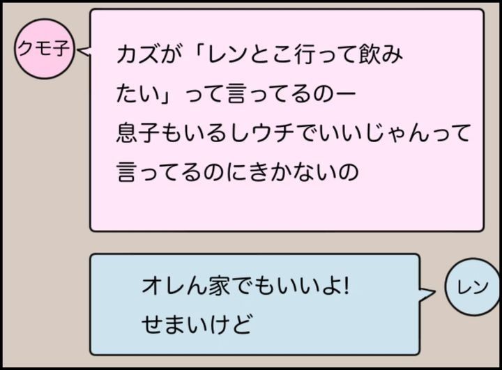 夫と子どもがくると言いながら、なかなかこないままお酒を進めてくるクモ子。何か裏があるように見えてしまいますよね。