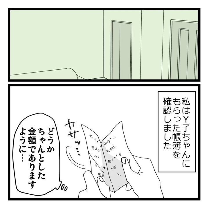 2人で相談した値段より高く売られている商品を見て衝撃を受けた、はに子さん。しかしY子さんを信用していたこともあり、そのときは深くは考えなかったようです。後日売り上げを渡された、はに子さん。売り上げがきちんと折半されていれば問題ないのでしょうが、販売ページを見た直後なら不安にもなりますよね。