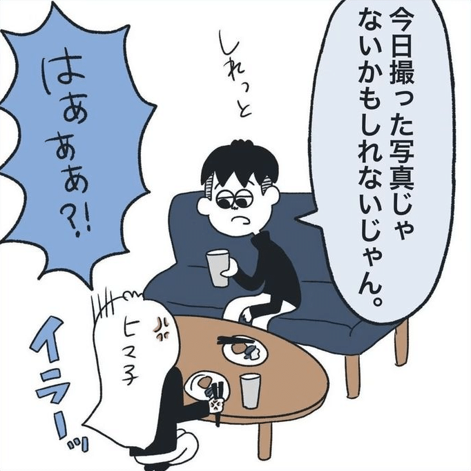 ヒマ子さんの疑いは晴れて、彼氏も安心できて、一安心。これで解決するはずだったのですが、食事中にまたも蒸し返す彼氏。まだ疑っているとしたら、ちょっとしつこく感じますよね。