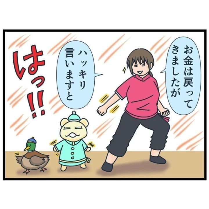 あずきにこれまでの不満を吐いたものの、何を言っても無駄だと悟ったナエくまさん。あずきは謝る気もなさそうですし、謝ってもらったところでお金が戻ってくるわけではありませんよね。