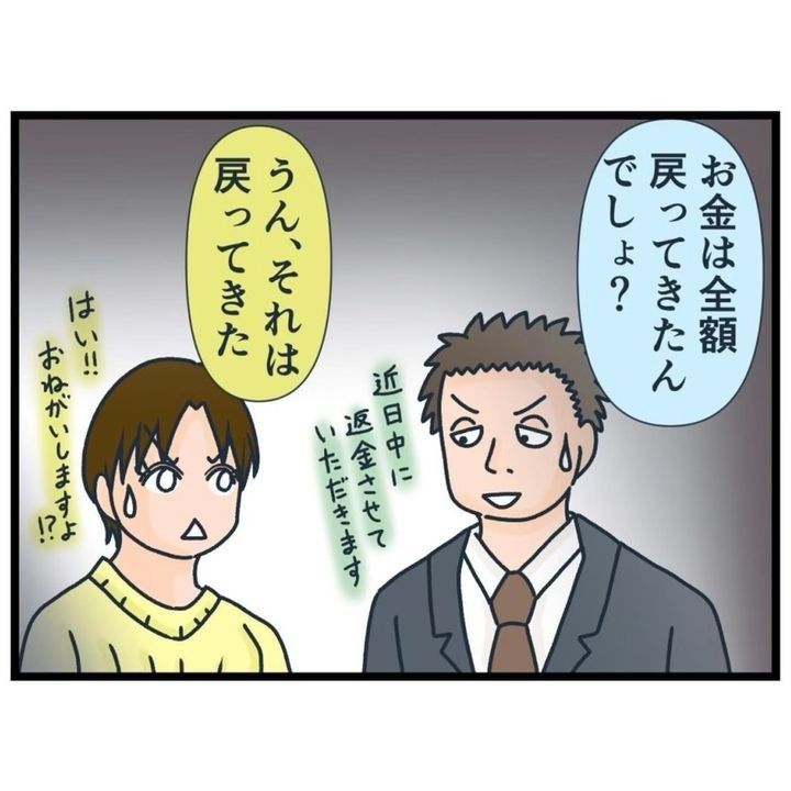 この漫画は、作者・ナエくま(@naekuma358)さんが高校時代の親友・あずきから怪しげなアルバイトを紹介され、一度は払ってしまったお金を取り返すまでのお話です。だまされていたことに気づき、最終的に登録料30万円の9割を取り返すことができたナエくまさん。その後まだ詐欺会社にいるあずきに、退会するよう説得し…。『マルチで友人とお金を失いかけた話』第113話をごらんください。