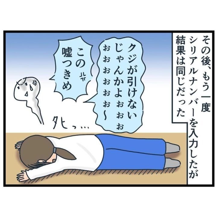 パソコンでシリアルナンバーを入れるとクジが引けるとのことで、意気揚々とやってみたナエくまさん。しかしなんとエラーになってしまいました。このときもすでに騙されていたのでしょうか…。