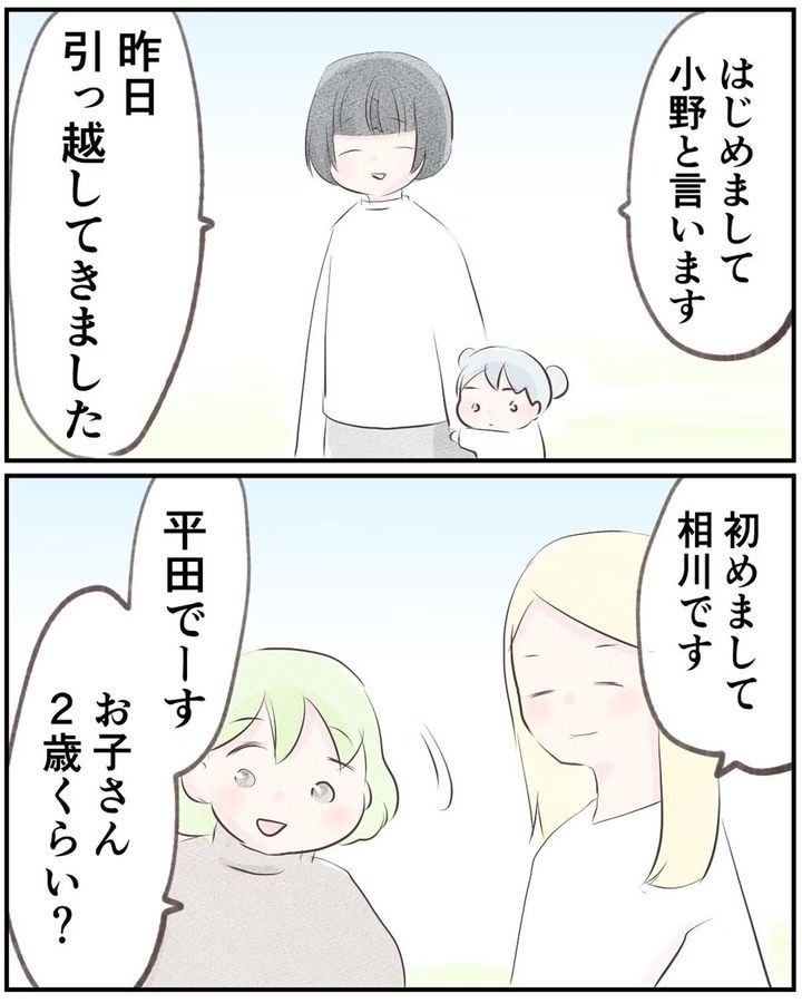 住んでいるマンションの公園で年の近い子どもを発見した小野さん。我が子と歳の近い子どものお母さんと親しくなれたら心強いですよね。
