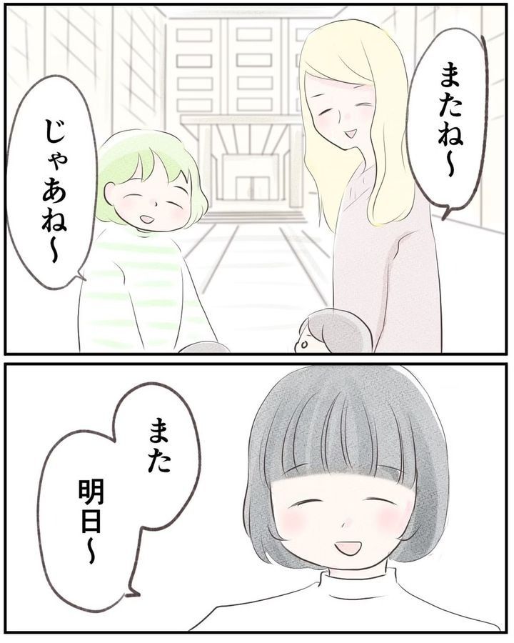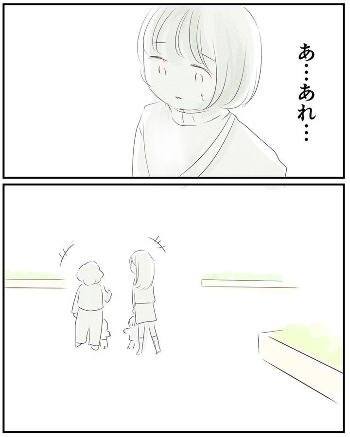 小野さんが、相川さんと平田さんに遊びの誘いをしても断られるように。しかし、予定があるといっていた2人は子どもを連れて一緒に遊んでいました。小野さんは2人から避けられていると気づきます。そしてある日、小野さんはゴミ捨てに出ると平田さんと鉢合わせたのでした。