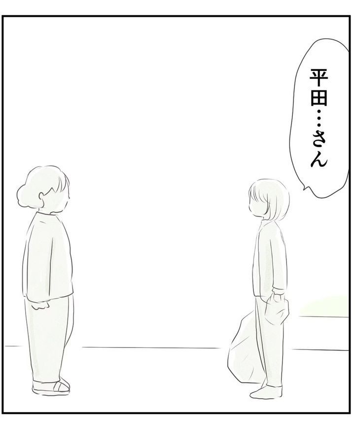 マンションのごみ捨て場へ向かう小野さんは、平田さんに出会います。しかし、挨拶もないどころか素通りされてしまいます。無視されたことに驚いた小野さんは、呼び止めて最近遊べていない理由を問いかけます。すると平田さんは、小野さんの言動が嫌だっと話し始めたのでした。