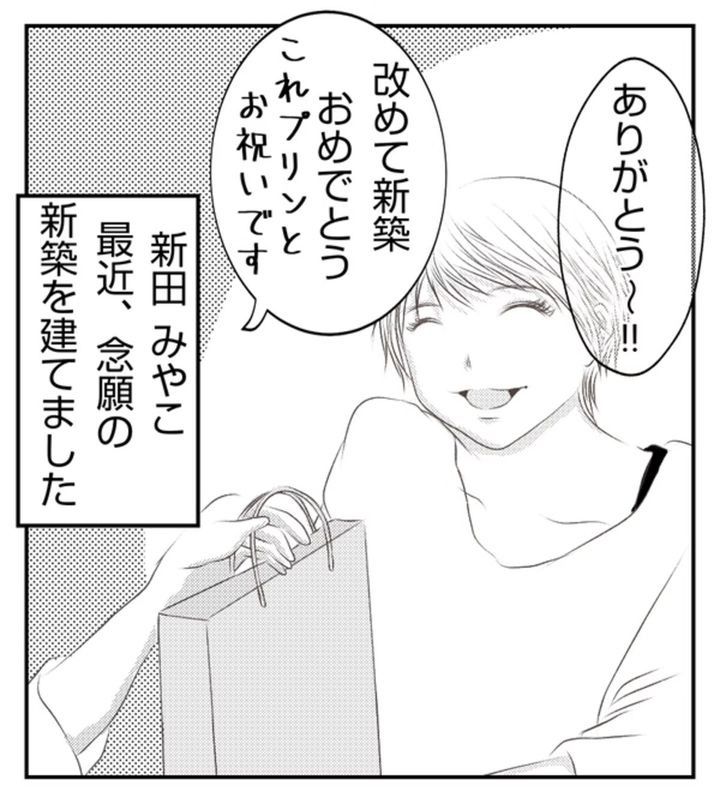 このお話は主人公みやこが、高校時代からの親友あさ子やその子どもたちに振り回された挙げ句、建てたばかりの家を傷つけられたことで、ママ友としての付き合い方を考え直すまでを描いています。ある日、幼稚園の運動会終わりでみやこの娘・みちるの出産祝いにやってきたあさ子たち家族。すると双子が揉めだして…。あおば(@ao_ba0524)さんの描く『新築の家をママ友の子供達に傷つけられた話』第6話をごらんください。