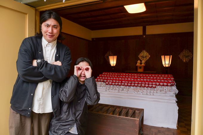 谷口:多いですね。受験シーズンは、やはり合格祈願の受験生がたくさんいらっしゃいます。外に「奨学神社」があるのですが、そこに、だるまさんがたくさん並んでいます。そのだるまさんは、お求めになられて、お家で飾って、始めは片目だけを入れて、合格したら、両目を入れ、「無事合格できましたよ」と、お礼参りで納めに来られるんです。