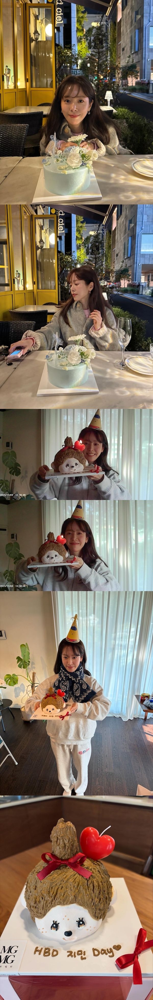 前日の11月5日に43歳の誕生日を迎えたハン・ジミン。写真には、さまざまなシーンで誕生日を祝われている様子が写っている。