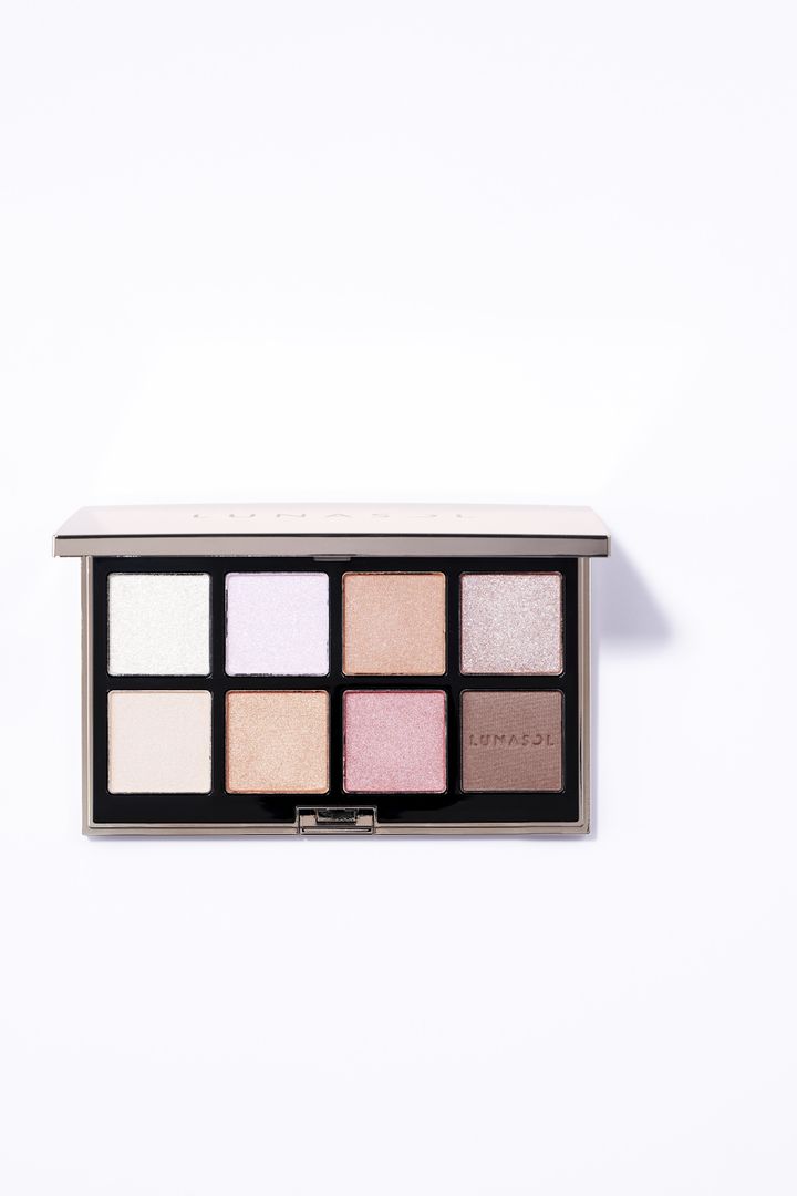 透明感のあるキラキラなアイパレットに目が釘付け♡ ハッピーなオーラを纏えるカラーが満載で、持っているだけで気分が上がります。ルナソルの得意なベージュトーンをベースにしたカラバリで、捨て色がなく、大人っぽさもかわいさも演出できるパレットです。目元のくすみを飛ばして透明感を引き出せるのも魅力的!