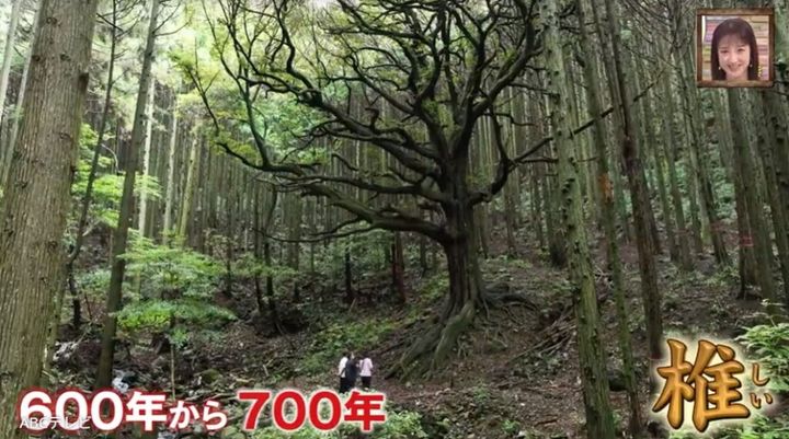 十三代目夫婦は、「森の主に会わせたい」と捜索隊を裏山に誘った。そこで待っていたのは、樹齢600年から700年と推定される椎の木。亡き父が老後、山の手入れをしていたのだそう。